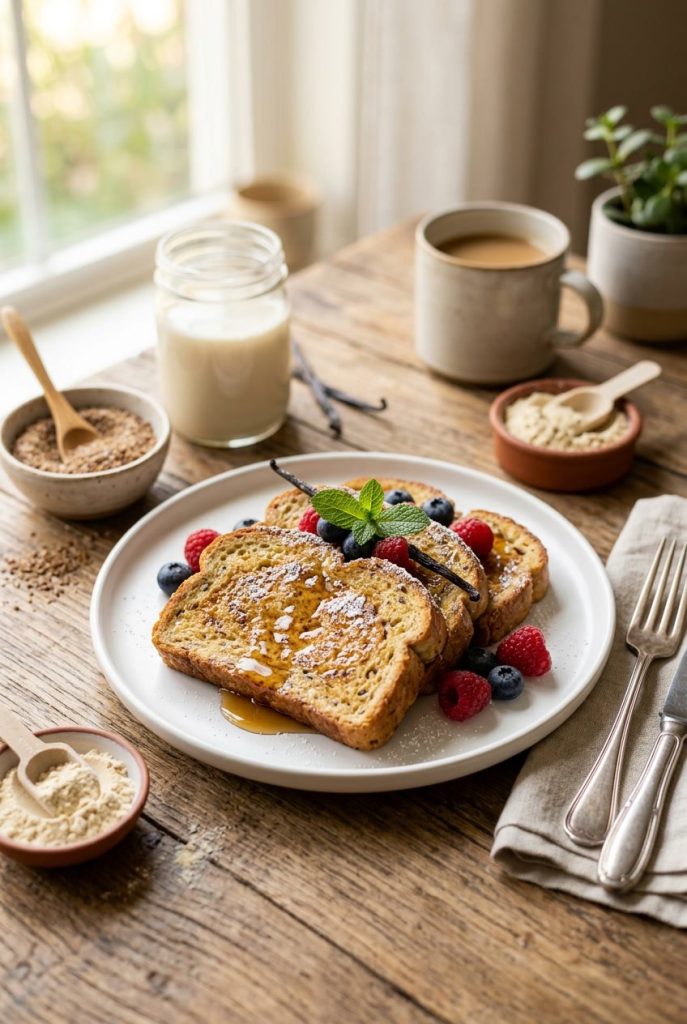 The contender: The final battle in the 5 Low-Sugar Vanilla Protein French Toast Battles for a Healthy Start goes fully plant-based. No eggs, no dairy — just a clever combination of flaxseed “eggs,” plant protein, and oat milk that delivers a surprisingly convincing French toast experience.